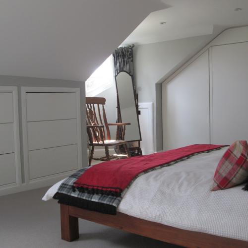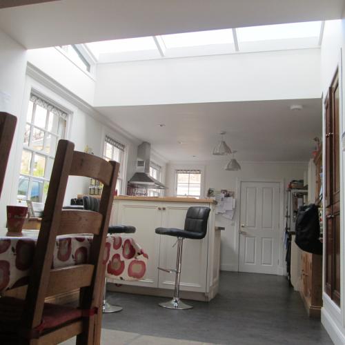 There were 2 distinct parts to this project: alterations at ground floor level and alterations at roof level. Unusually at Park Road, many of the buildings, such as this one, are orientated away from the road and the access. Access to the house was through the kitchen which was located within the extension towards the rear. We brought a new access into the hallway beneath the landing of the stair and we also provided a separate dedicated entrance to the kitchen. A large structural opening was formed between the kitchen and the main house which in turn enabled a large rooflight to be installed bringing light into the heart of the house and tying the spaces together. At roof level a large bedroom and a shower room were formed.